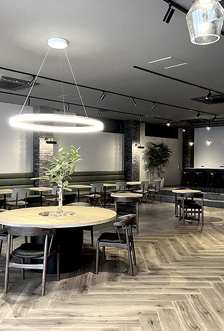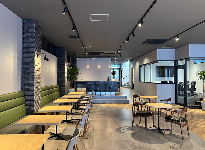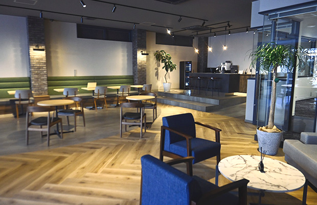 1Fに約130m²のラウンジスペースを用意。イベントやセミナースペースとしての活用も可能です。
